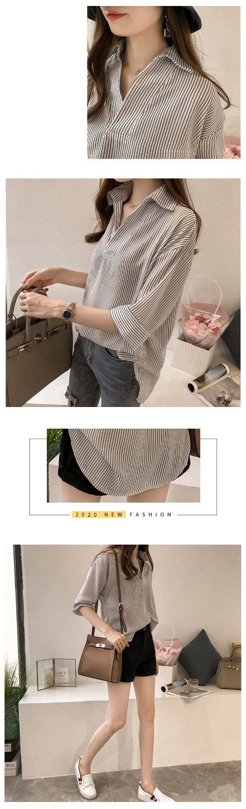 1分钟前新品上市,勁爆特殺!全場大放送,單件低至NT$432,2020新款夏裝中長款韓版寬松顯瘦條紋襯衫女七分袖,廠家直銷,超值優惠,買到賺到!過後漲價! - 【買一送二】任選3件 僅需NT$1298,單件低至432